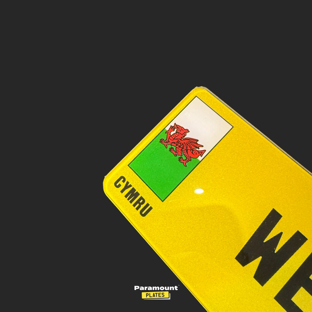 Welsh Dragon optional extra for your number plates. Featuring the iconic red dragon on a bold white and green background, this design embodies the spirit, heritage, and pride of Wales. Add a distinctive touch to your vehicle and showcase your connection to Welsh culture with this eye-catching plate enhancement.