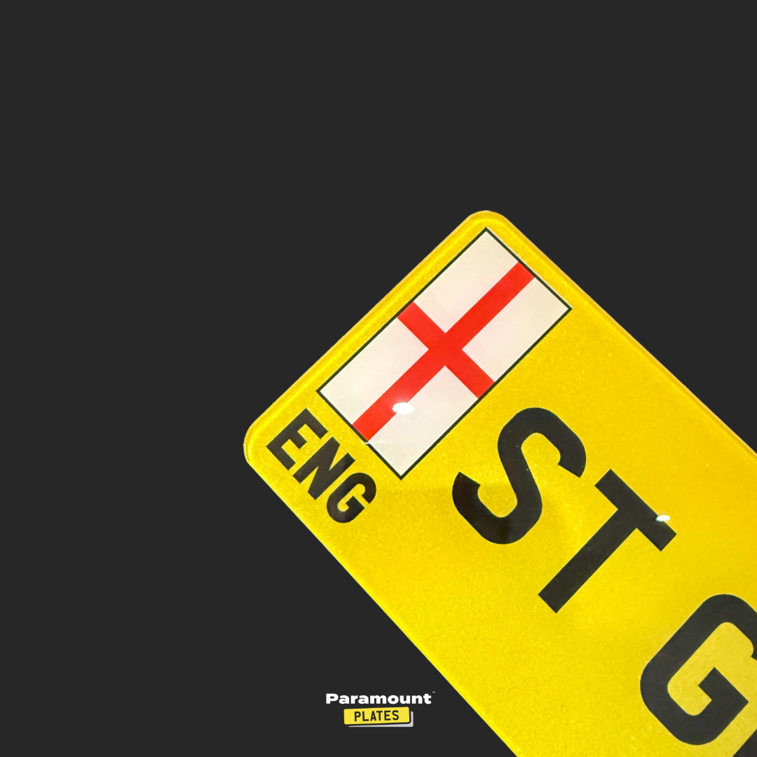 St George’s Flag optional extra. Featuring the iconic red cross on a clean white background, this striking design proudly represents England. Perfect for enhancing your vehicle’s look while showing national pride, it’s a standout addition for drivers who want their plates to make a statement.